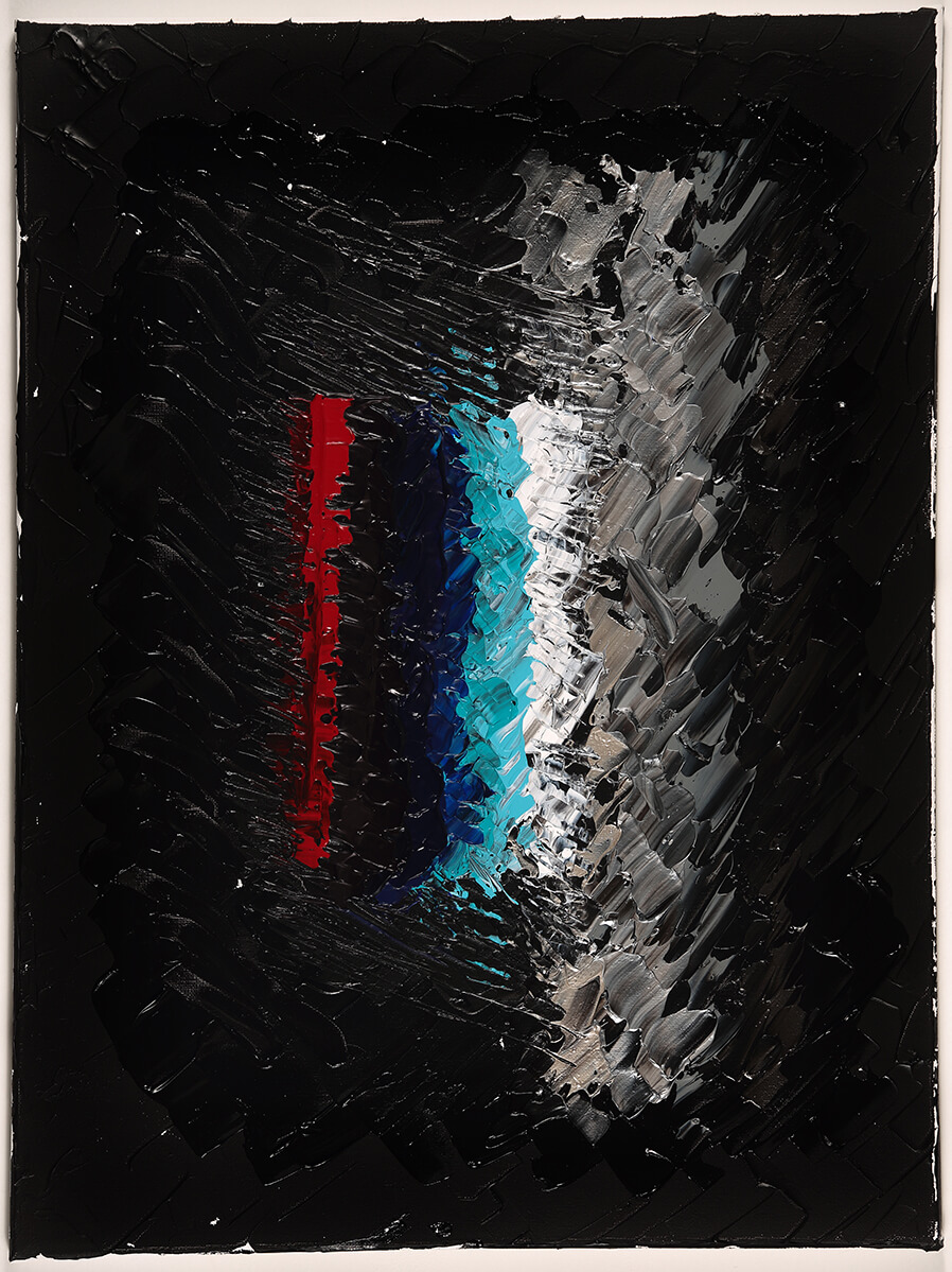 His paintings emerge from a process of addition and erasure. Layers are built, disrupted, and reformed, creating surfaces that function as visual records of time and decision-making. This method reflects an overarching philosophy of refinement: removing the unnecessary to reveal the essential.