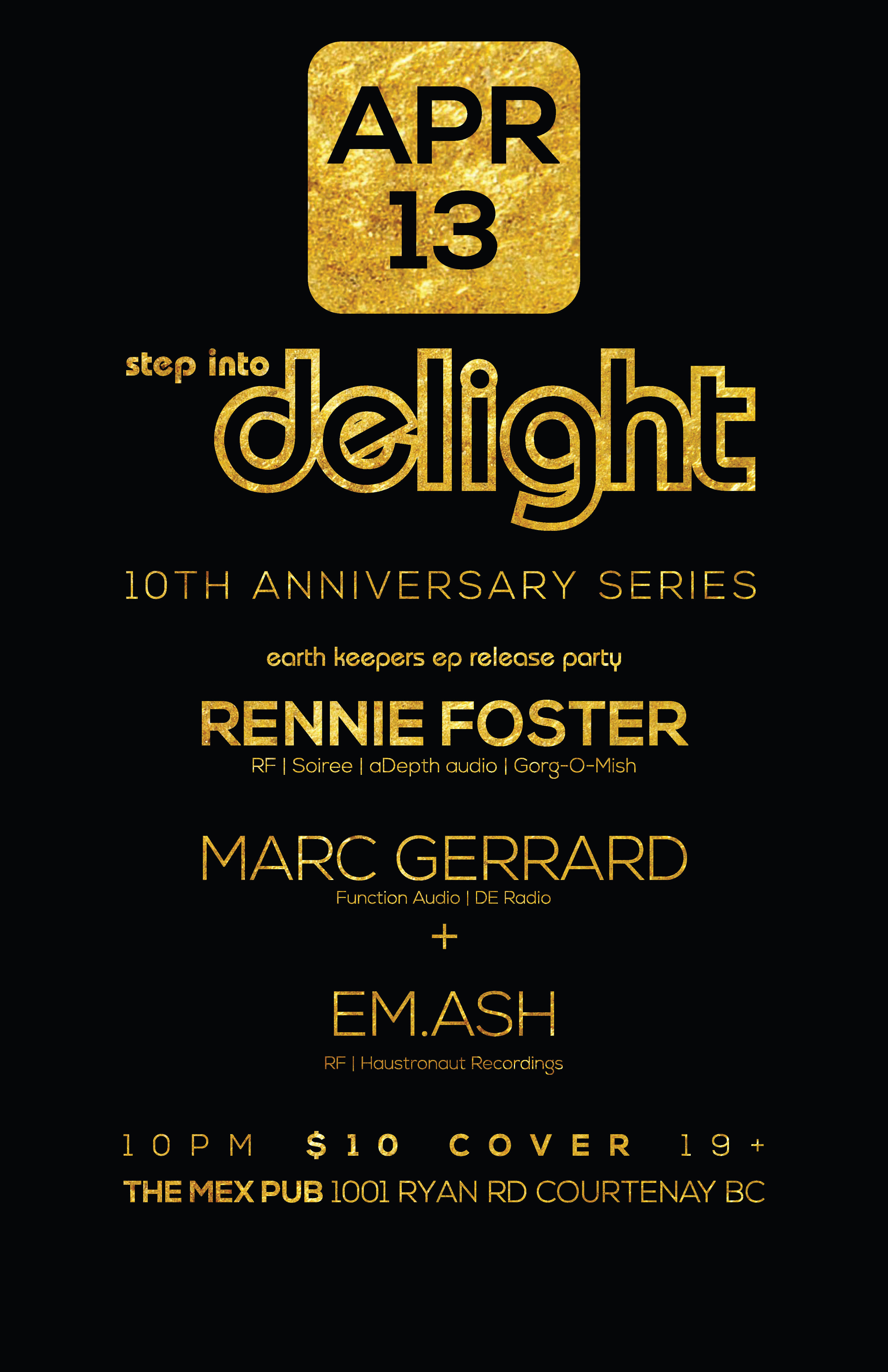2019 marks the tenth anniversary of Delight, a monthly night that ran close to three years at the Mex Pub in Courtenay. To celebrate this milestone the Delight team is getting back together to create four special nights focusing on deeper dance music.